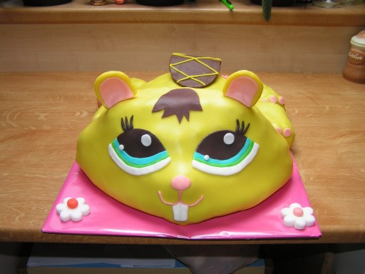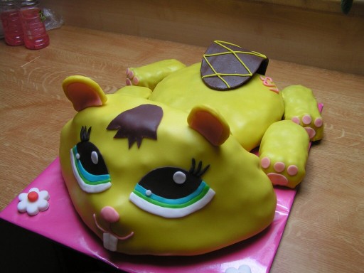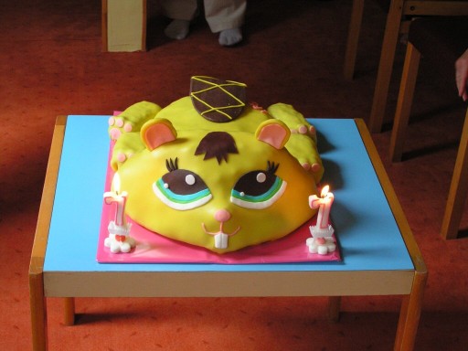 Přemýšlela jsem jaký dort udělat holkám k letošním - už sedmým narozeninám. Obě jsou zblázněné do zvířátek LPS,takže už jen vybrat, které z těch všech to vyhraje. Volba padla na bobra. Letos poprvé dostanou k narozeninám dort společný. Korpus na hlavu je poskládán z dortové formy a tělo ze dvou plechů - celkem asi ze 40-ti vajec. Potaženo naší oblíbenou mléčnou hmotou, jen oči a kytičky na svíčky jsem vyzkoušela z kupované hmoty White icing. Manželovi nejede, ale holkám chutná. Když jsme dort předali, Terezka hned utíkala hledat kamaráda, aby byli u sebe - takže poznala o co se maminka pokoušela a myslím, že si i obě šmakovaly.