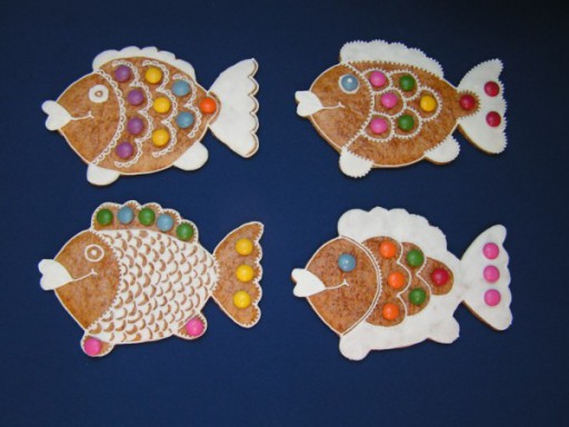 Všem jsem připravila perníkové jmenovky s marcipánem, aby se u stoly nedohadovaly a ráno ještě dostaly malé perníkové rybičky. Jmenovku hned snědla jenom jedna holčina a ostatní si ji i s rybičkou nesly domů. Bylo to fajn - hry se líbily, pohádka a dárečky taky, holky odcházely spokojené, takže i já byla spokojená.